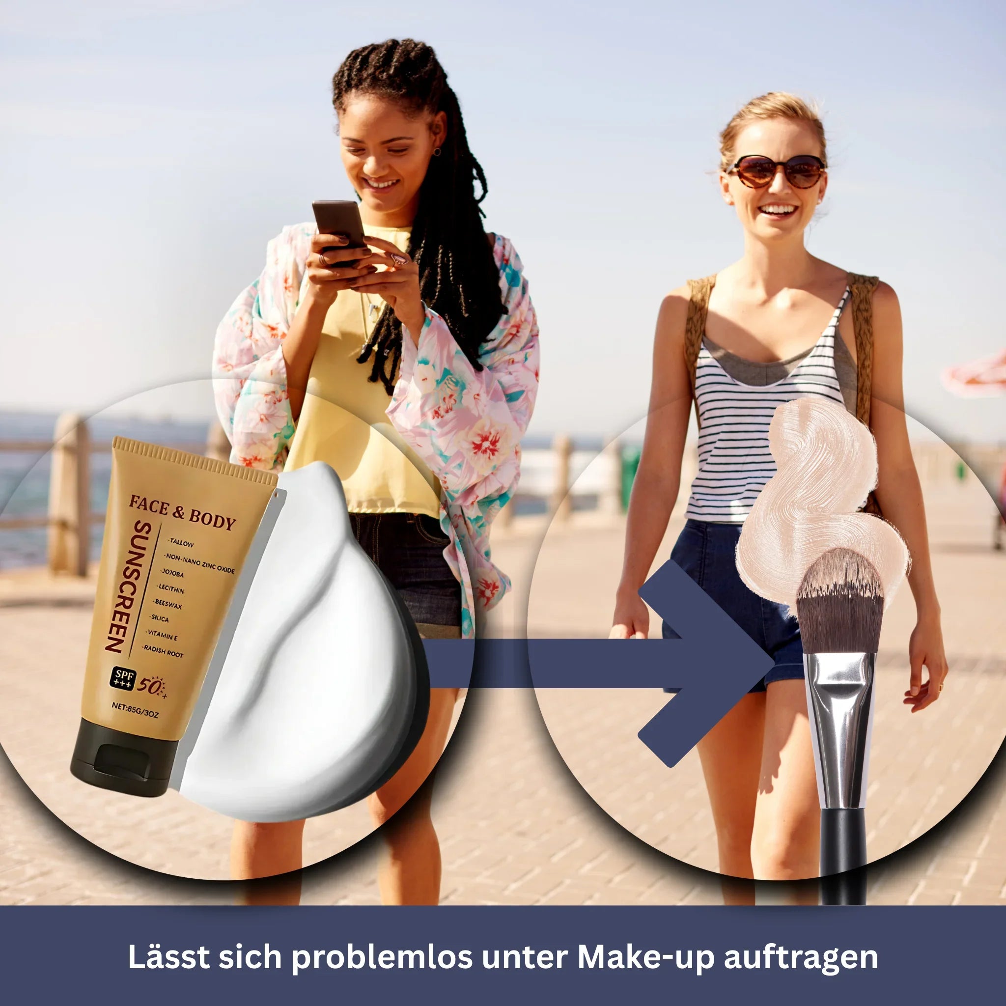 Ja, die wasser- und schweißresistente Formel schützt zuverlässig bei Sport, Schwimmen oder längeren Aufenthalten im Freien, während sie die Haut pflegt und regeneriert.