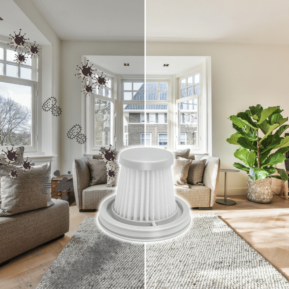 Dank seiner HEPA-Filterstruktur hält der Ersatzfilter selbst sehr feine Schmutzpartikel zurück, die mit bloßem Auge nicht sichtbar sind. Besonders Feinstaub, der sich häufig in Möbeln, Polstern oder im Auto sammelt, wird zuverlässig gebunden.