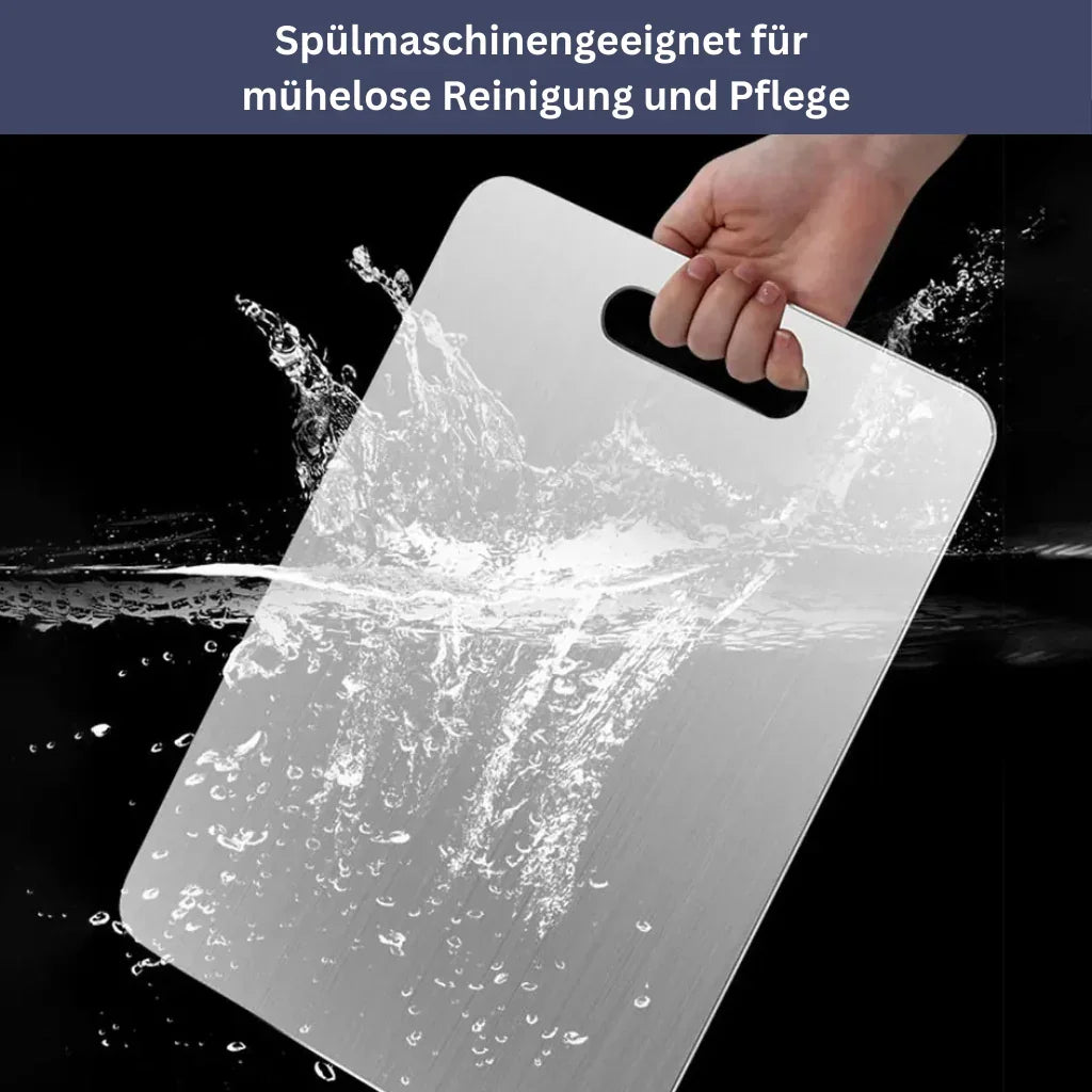 Im Vergleich zu Holz oder Plastik, die Bakterien beherbergen oder Messer schnell stumpf machen können, bleibt das TitanElite Schneidebrett in ausgezeichnetem Zustand und ist zudem spülmaschinenfest.