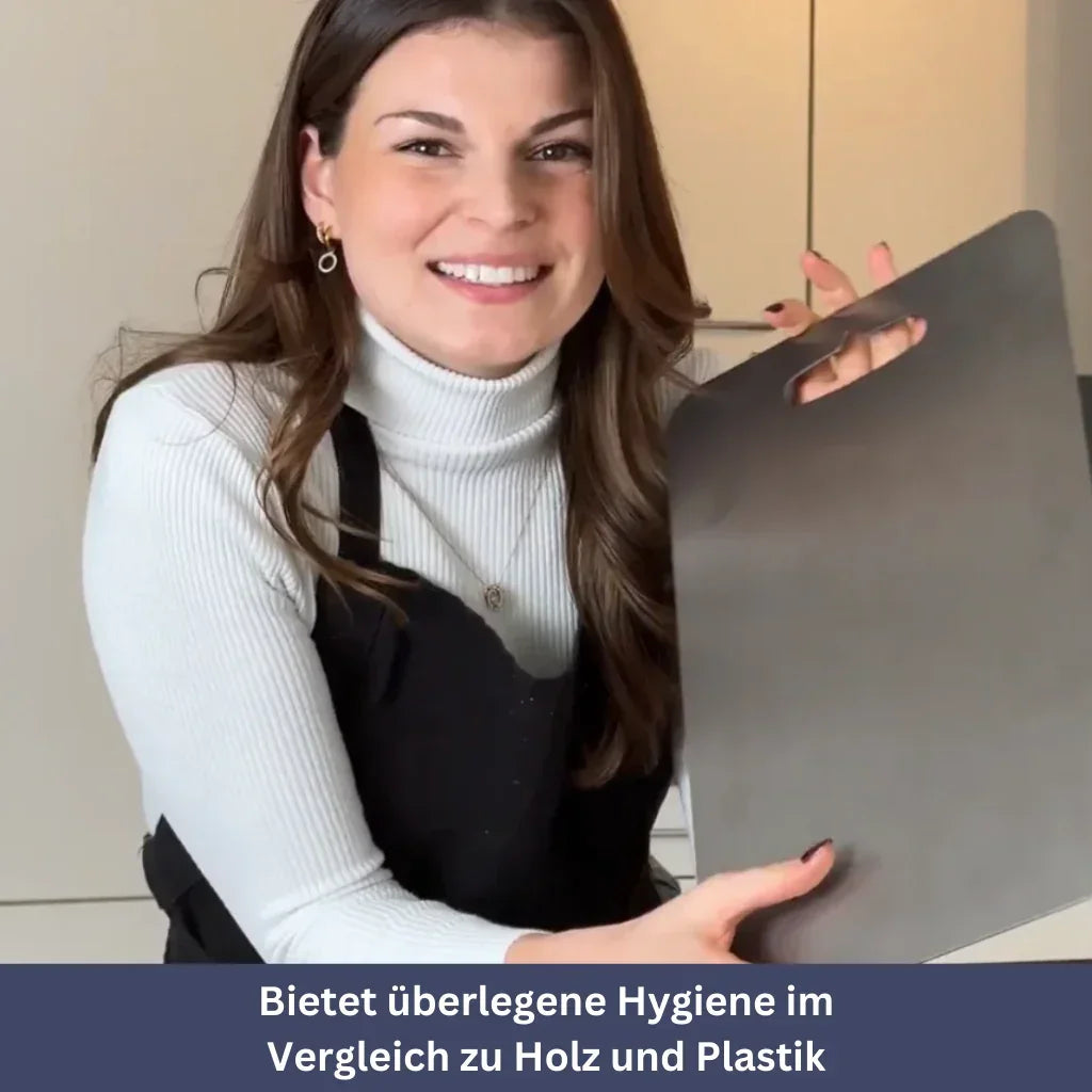 Im Vergleich zu Plastik, das oft schädliche Chemikalien wie BPA enthält, oder Holz, das Bakterien und Schimmel aufnehmen kann, stellt das TitanElite Schneidebrett eine hygienische und langlebige Alternative dar.