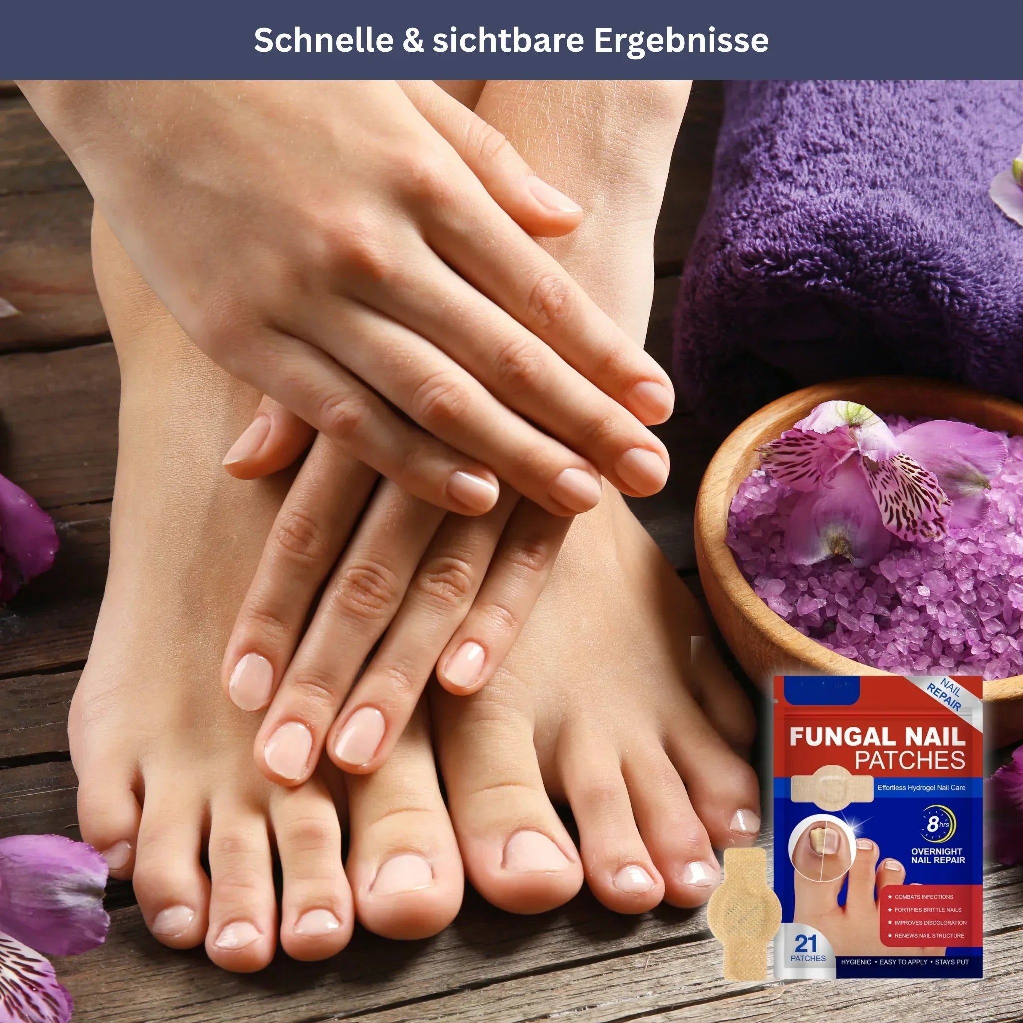 Entwickelt, um sich nahtlos an die Nageloberfläche anzupassen, sorgt jedes Pflaster für eine vollständige Abdeckung der betroffenen Stelle.