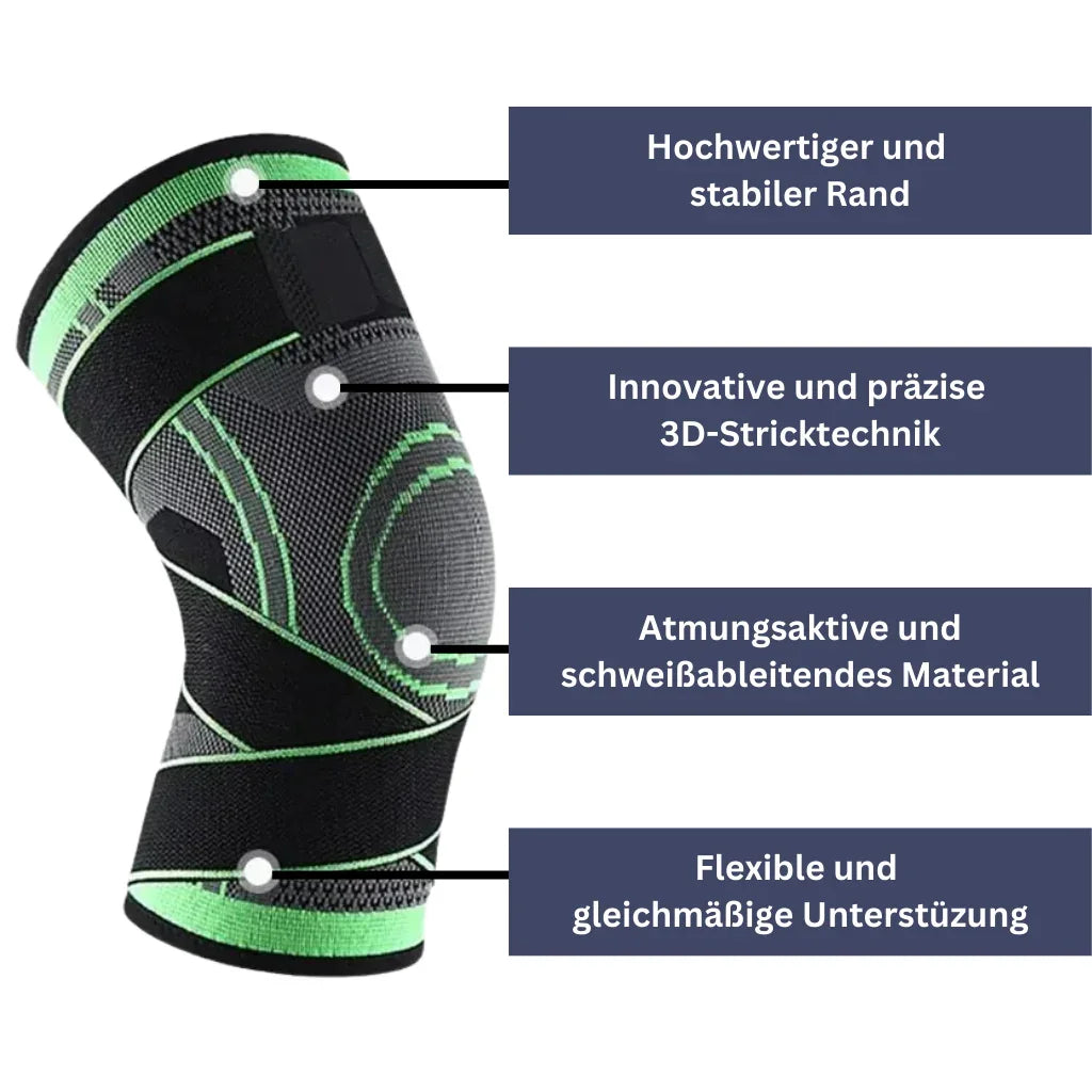 Die Bandage verwendet eine spezielle 3D-Stricktechnik, um den Druck gleichmäßig zu verteilen und gleichzeitig den Tragekomfort zu erhöhen.