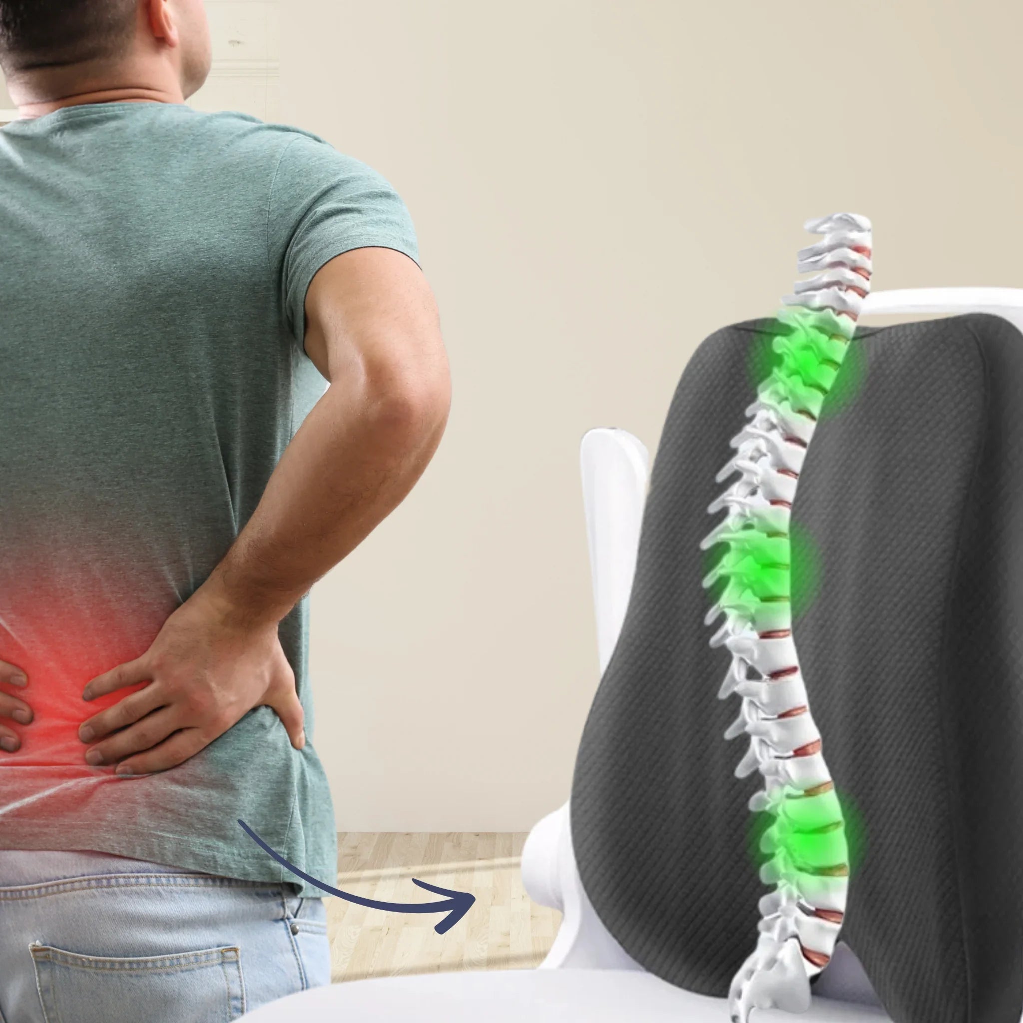 Der hochwertige Memory-Schaum passt sich individuell der Wirbelsäule an und hilft dabei, Verspannungen sowie Schmerzen im Lendenbereich zu lindern – ideal für Büro, Auto oder Zuhause.