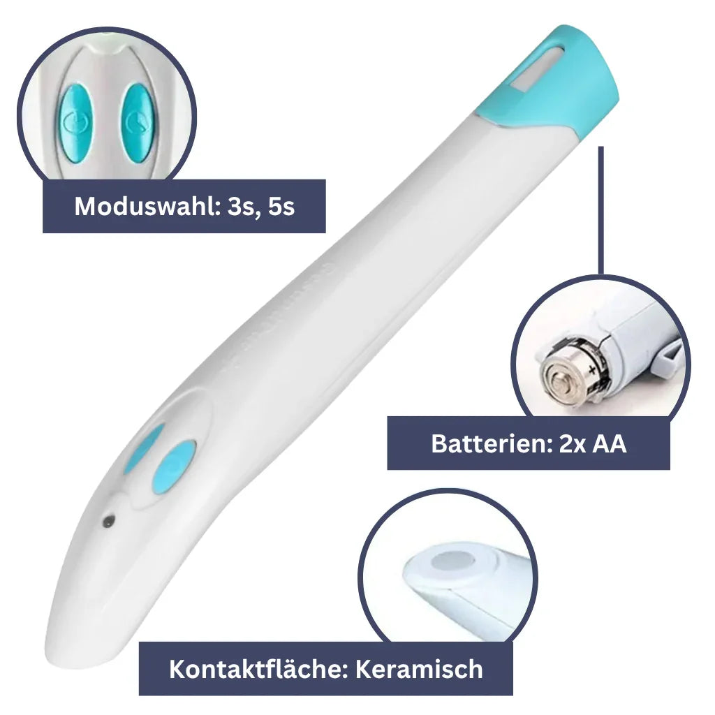 Mit einem Satz Batterien kannst du bis zu 300 Anwendungen durchführen, was ihn zu einer kostengünstigen Alternative zu teuren Salben und Cremes macht.