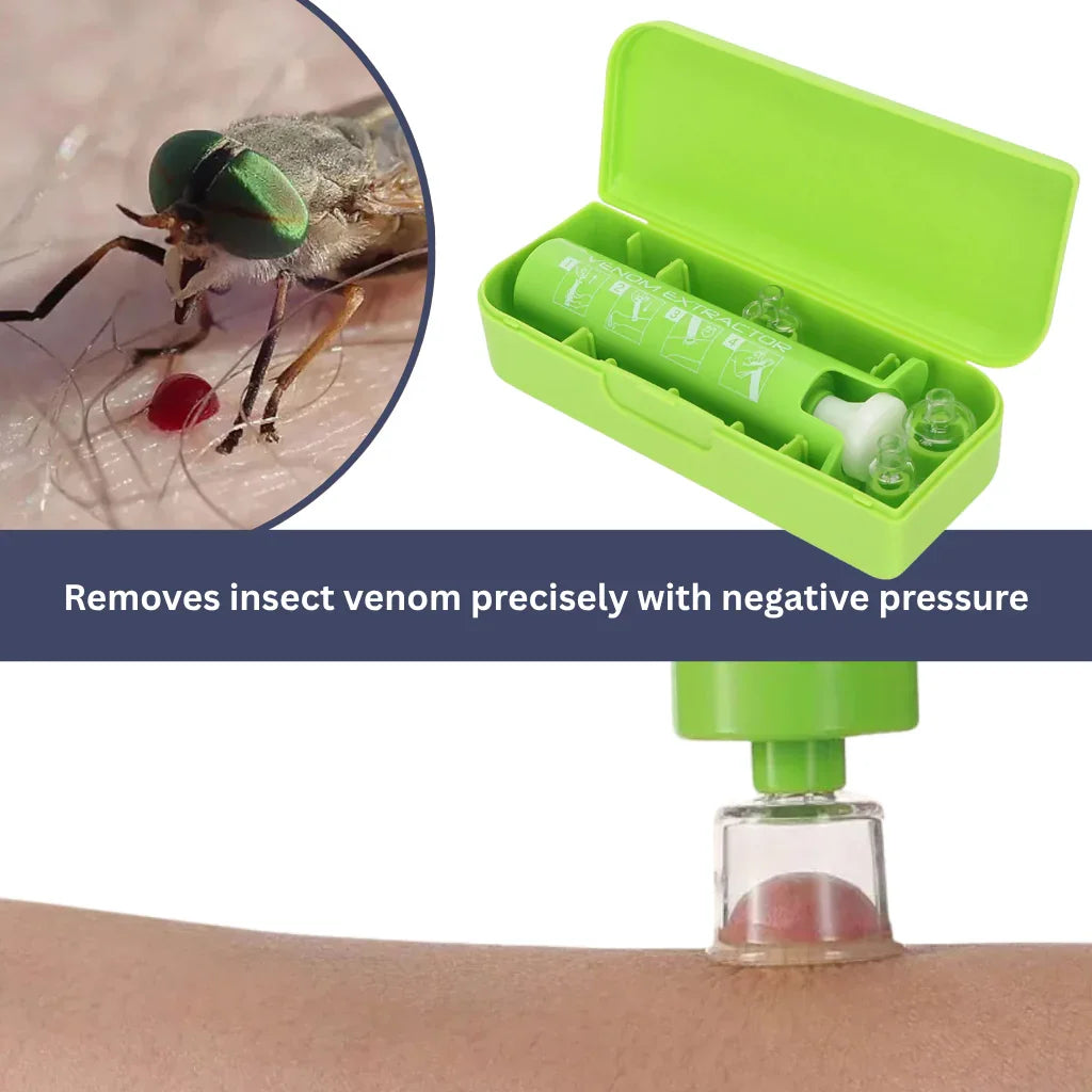 This advanced suction pump quickly and precisely removes insect venom from the skin by creating targeted vacuum pressure.