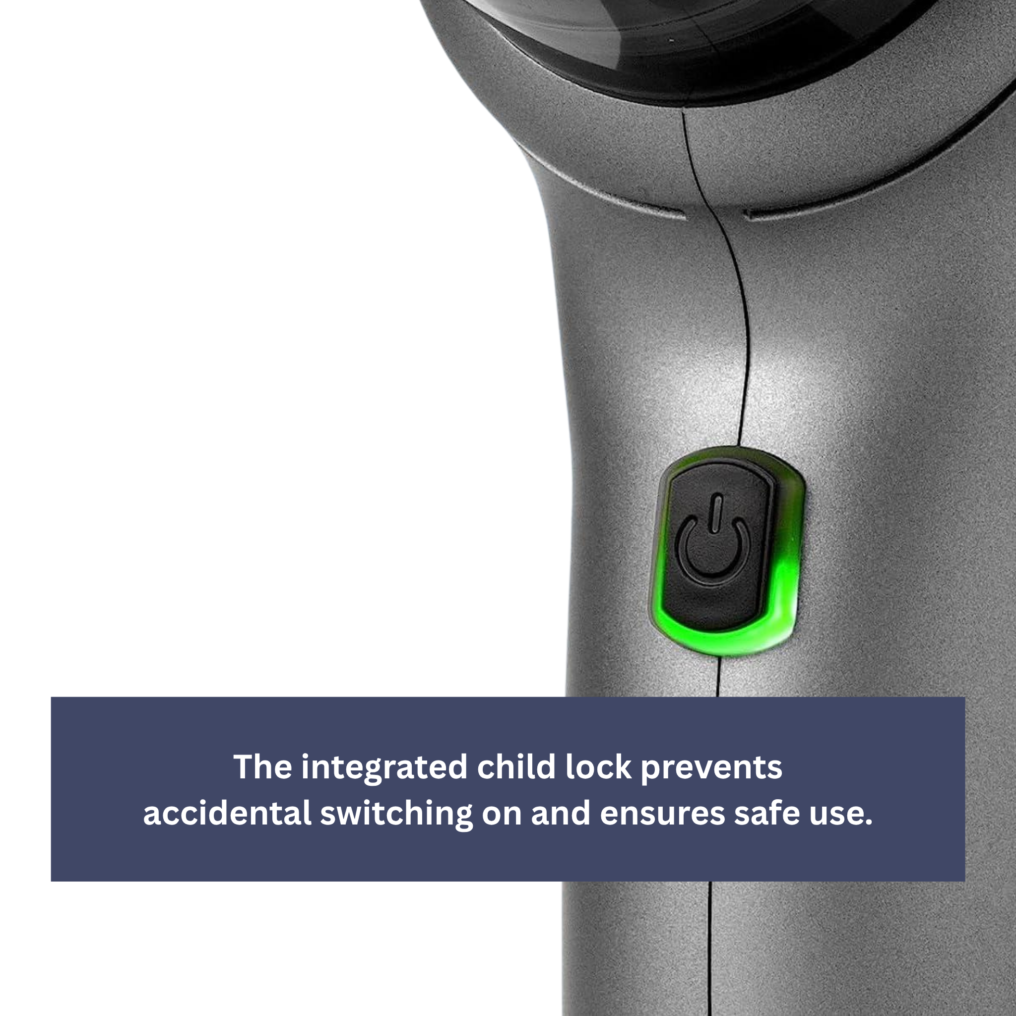 Equipped with smart chip technology, the CleanJet includes a child safety lock.