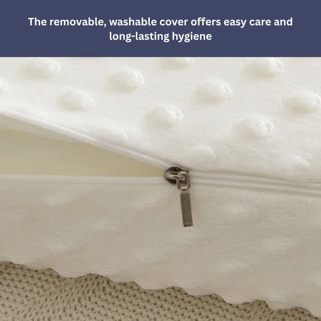 The removable and washable cover makes care easy and contributes to the pillow’s long lifespan.