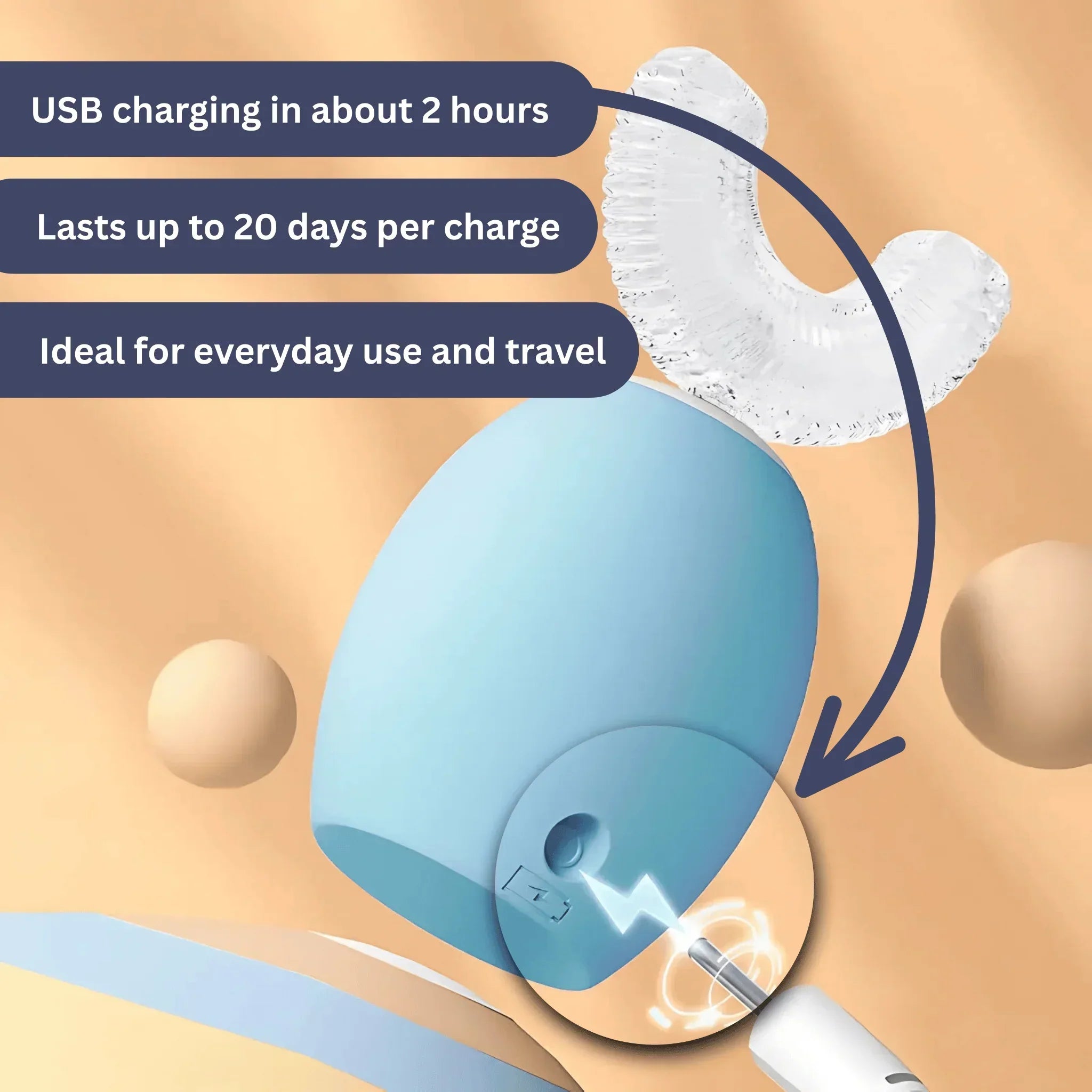 Afterward, the toothbrush can be used for up to 20 days continuously, making it ideal for daily use and travel.