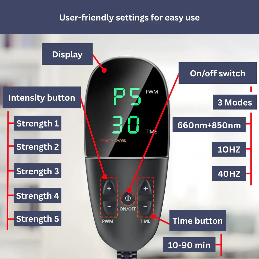 Equipped with 630 powerful LED beads (63 x 14 inches), it’s the perfect solution for deep-acting therapy that targets muscles, joints, and skin in a single step.