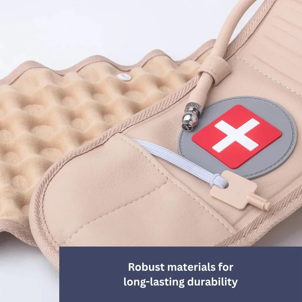 Using the Orthogurt is simple: wrap it around your waist, secure it, and inflate it with the hand pump.