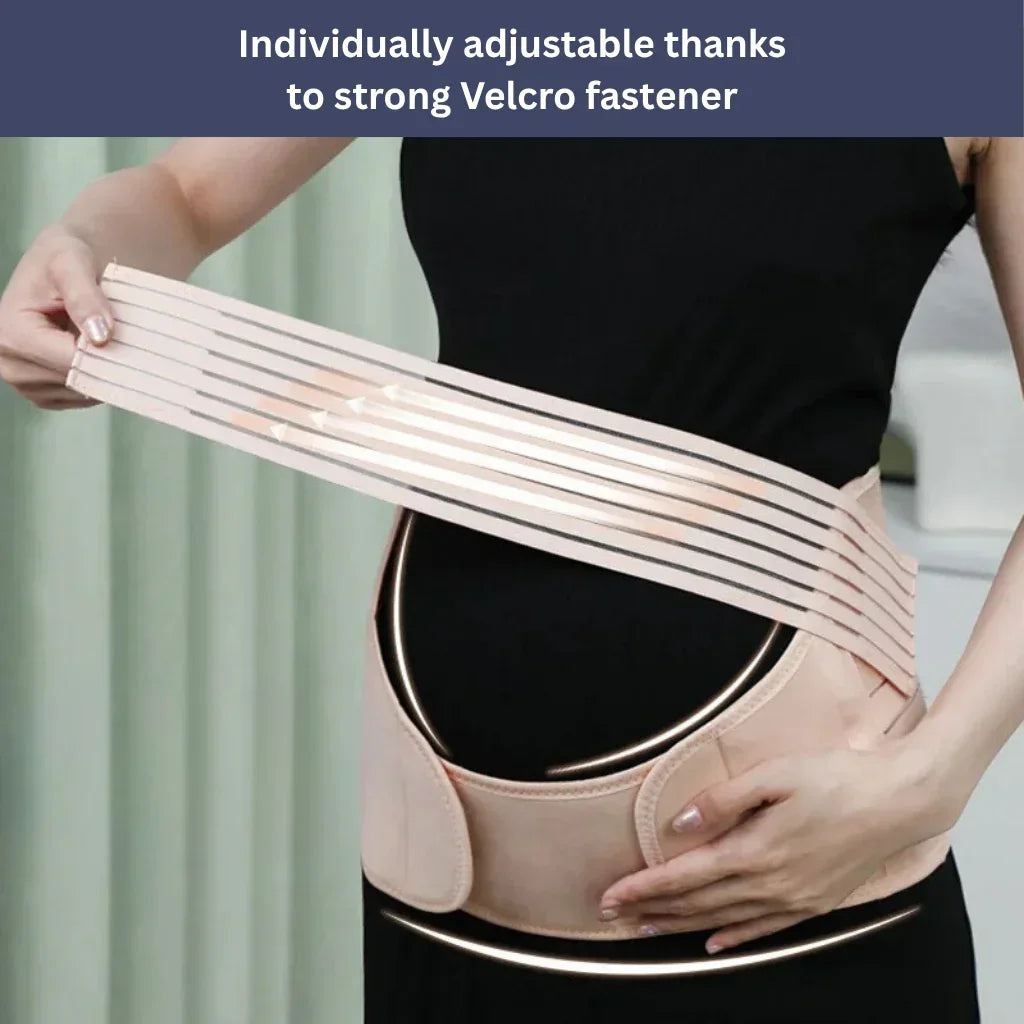 The belt offers targeted support for your belly and back by distributing the load evenly, thus relieving back and abdominal pain.