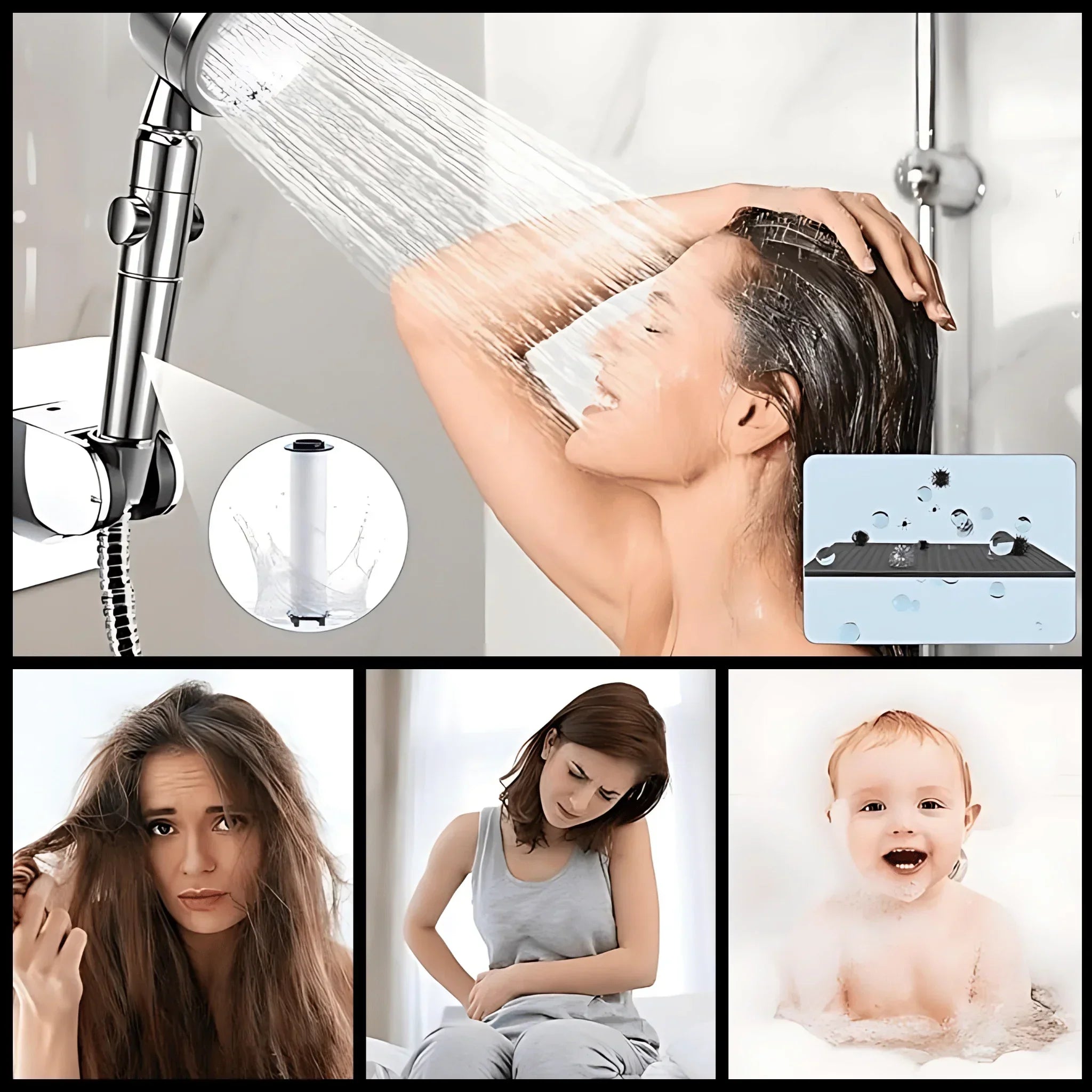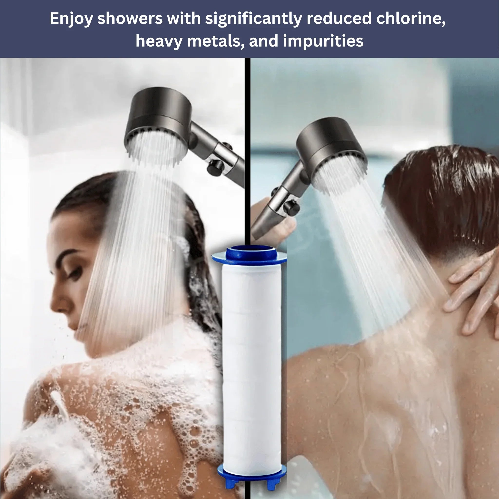 The filters reduce chlorine, heavy metals, and impurities, keeping your skin and hair protected from dryness and irritation.