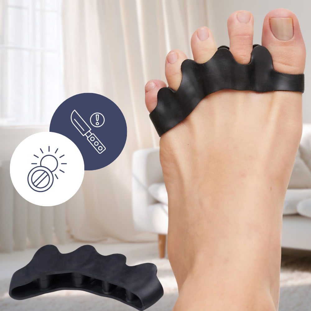 RelaxToe is ideal for people with bunions, plantar fasciitis, or mild toe misalignments.