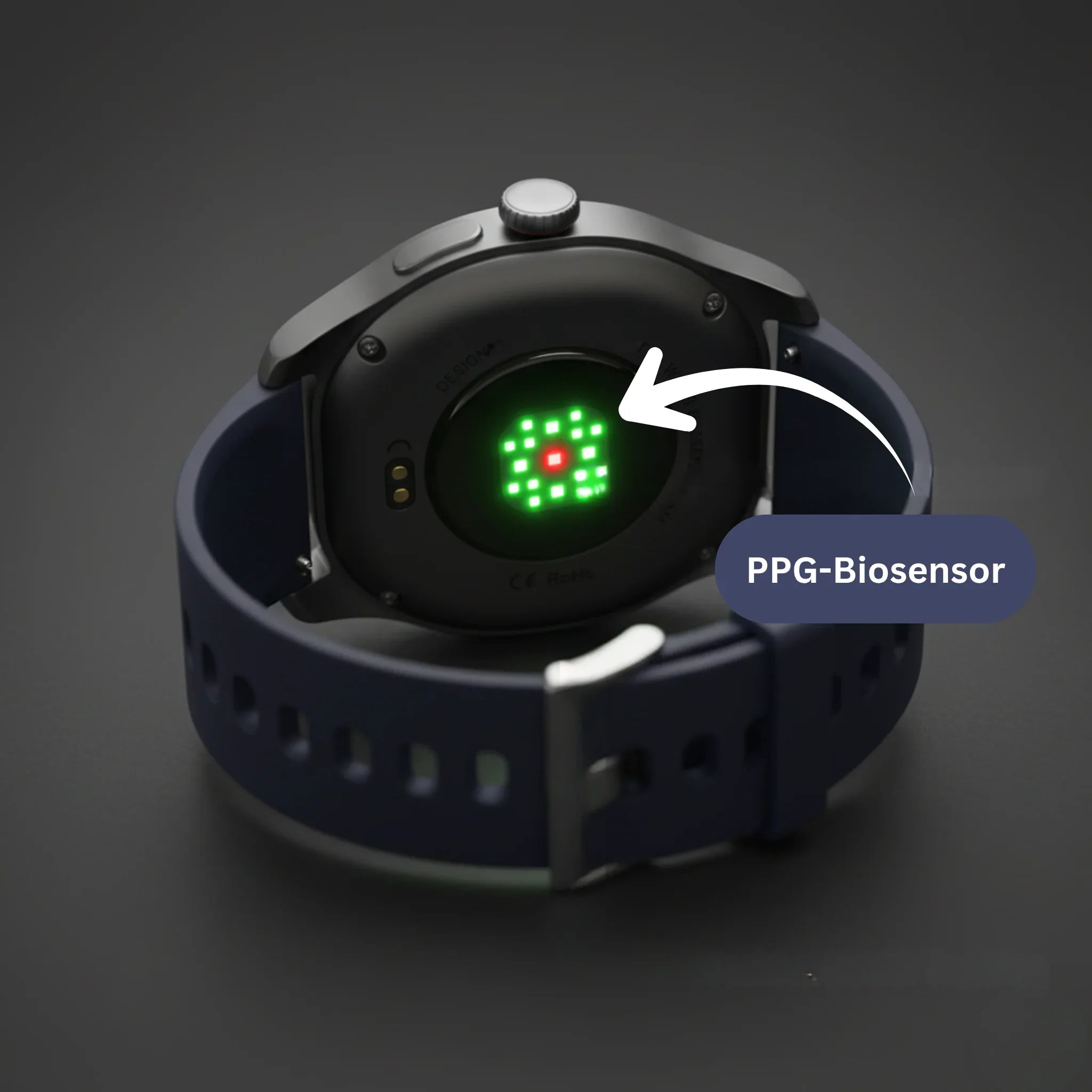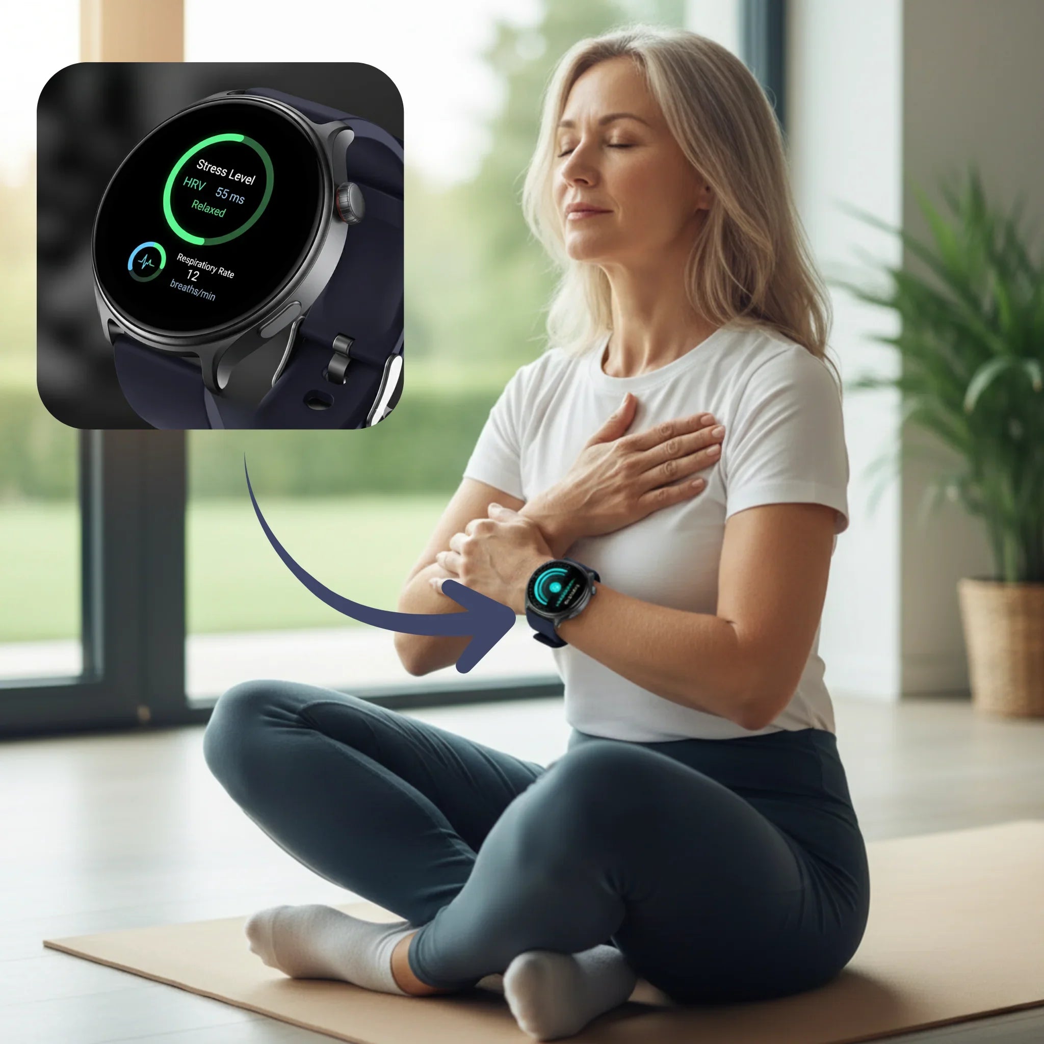 The VitalPulse Watch tracks your stress levels using heart rate variability (HRV) and shows when your body needs recovery.